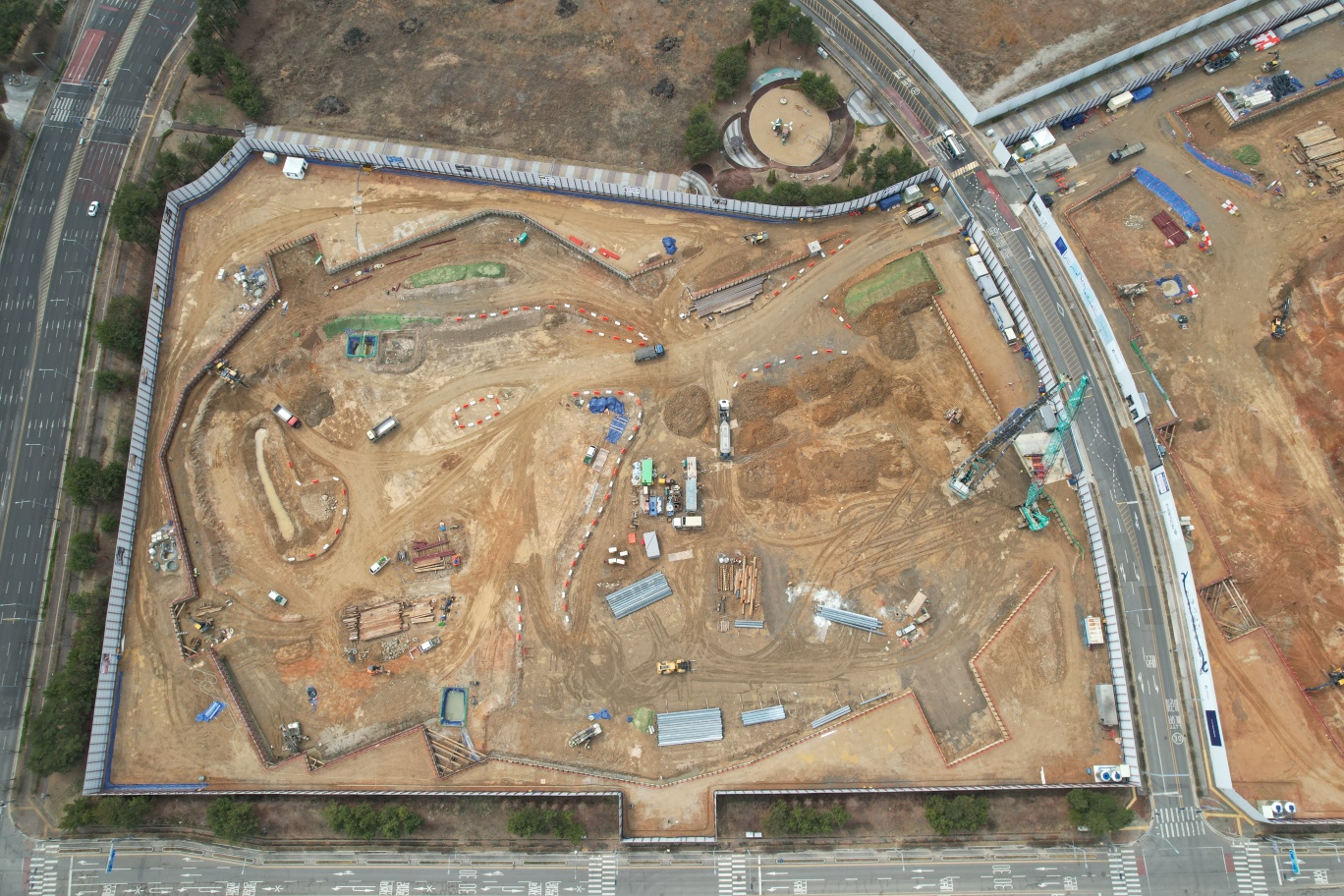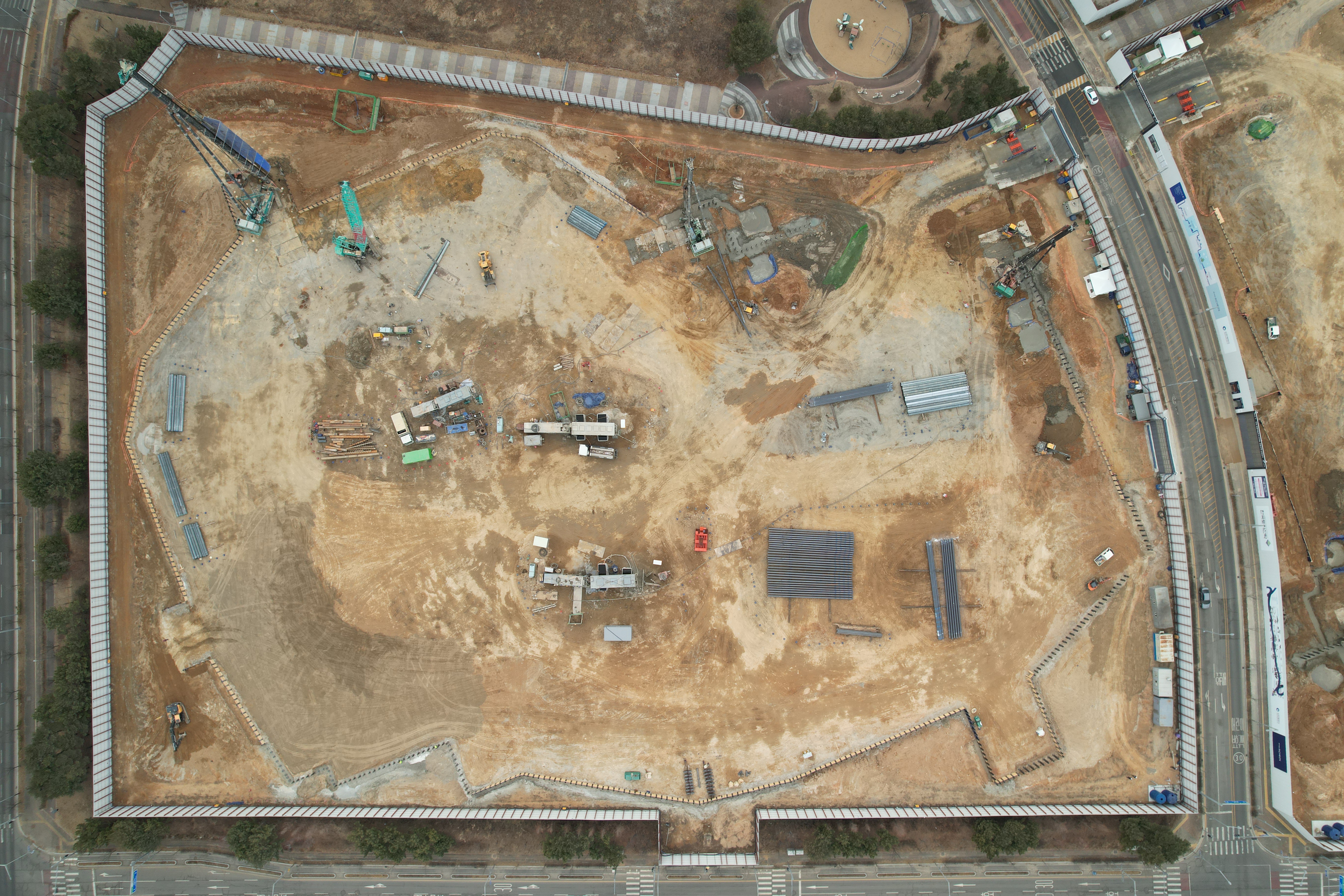 - SCW 천공기 반입 및 조립, 천공 및 항타